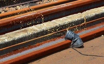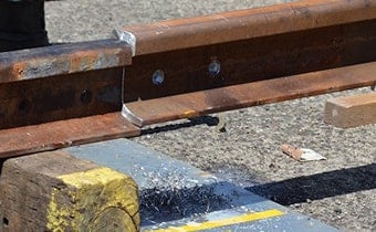 競技では、50㌔レールの切断や穴あけ、60㌔レールの継ぎ目板の締結などのほか、さまざまな種類が混ざった継ぎ目ボルトやナット、ワッシャーの中から必要な物を選び出して正しく締結できるかを競った。審査項目には互いの声掛けや応答、熱中症防止対策なども含まれ、参加者たちは連携を取りながら真剣な表情で競技に臨んだ。会場の一角ではデジタル式標準ゲージや自動レール切断機など最新の機器類のメーカーが取り扱いを実演。また、長さ20㍍の60㌔レールを約10㌢の高さから安全靴甲ガードに落下させて、参加者たちが転倒時の危険性をあらためて確認した。