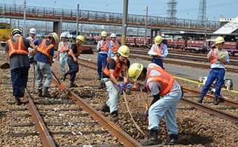 同社と協力会社、JR東海の関係者ら計約90人が参加し、競技やデモンストレーションを通じて安全で効率的な保線作業の重要性を確かめた。