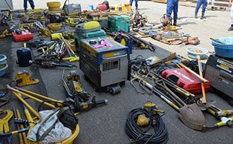 また、コンクリートカッターが切断作業中に抜けなくなった過去の事象をを踏まえ、実際に抜き取るデモンストレーションうを実施。除去作業で効果が見られた複数の豆ジャッキとジャッキ棒の使用について、今後の緊急対応器具として標準化していくことを徹底した。