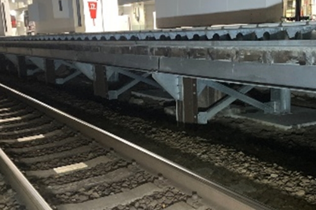 令和3年3月24日、東海道新幹線の高架下ささしまオフィス新築工事が竣工しました。この工事は令和2年4月より着工、空頭制限のある新幹線高架下において鉄道構造物への影響を考慮し、軽量かつ強度のある新開発のハイブリッド建材(炭素繊維+木材)を使用し施工しました。高架下オフィスでは初となる木造建築で、柱のない広いオープンスペースを確保し開放的で機能的なオフィスの空間を創出しました。工期や施工条件など様々な制限・制約が非常に厳しい状況の中、無事故無災害で工事を完遂しました。