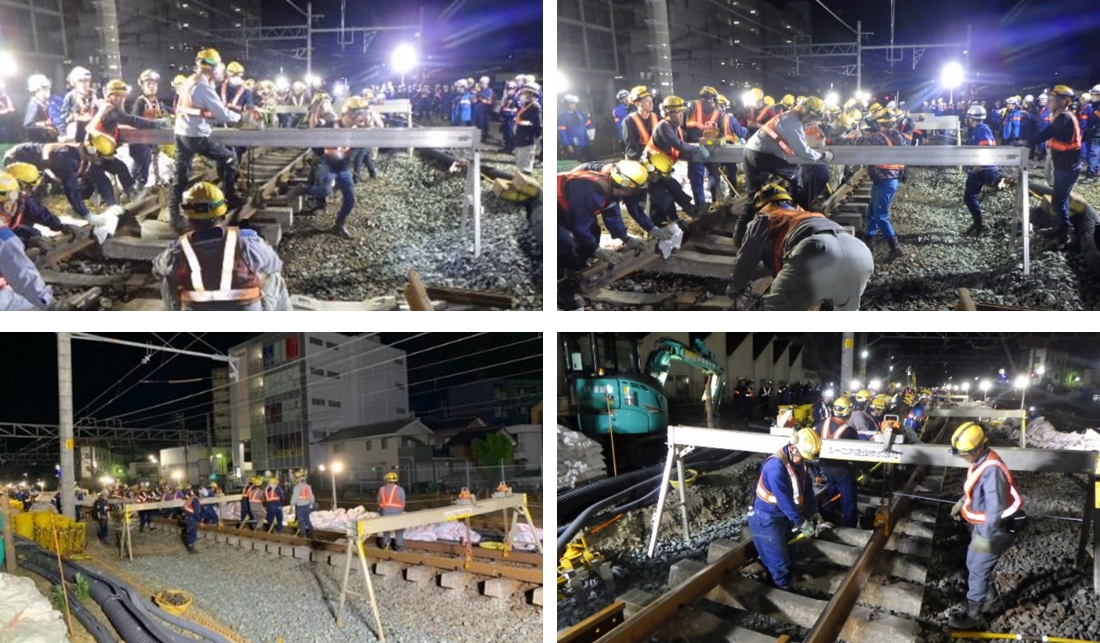 JR東海刈谷駅の旅客ホーム拡幅工事において、拡幅後の旅客ホーム(1・4番線)に対応した線路の新設工事を行いました。2023年のゴールデンウィークには下り線(4番線)の線路新設及び切換が完了し、運用が開始されています。数年後には上り線(1番線)の線路の敷設を予定しています。