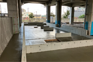 愛知県春日井市 JR中央本線勝川駅の高架下に名古屋駅の人気スイーツ「ぴよりん」の製造・販売を行うケーキ工房(木造平屋建258.0㎡)を新築しました。高さの制限と高架柱が立ち並ぶ狭い場所での施工には細心の注意が必要でした。また、駅が近く、旅客の往来が多いため、安全に配慮しながら工事を進めました。工事は2023年7月に着工し、2024年2月に無事故・無災害で完遂しました。