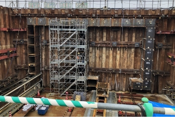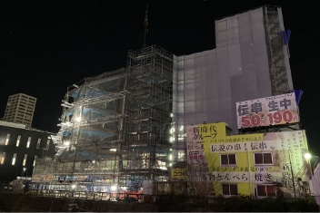 建設地はJR中央本線の営業線が近接しており、また商業施設が立ち並ぶ人通りが多い駅前という厳しいロケーションでの施工でしたが、