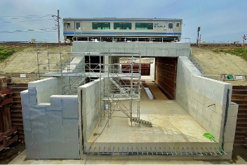 三重県鈴鹿環状線磯山バイパス新設工事に伴い、伊勢鉄道の線路下に架道橋を新設する工事を施工しました。当社が単独で行う工事としては初めて、HEP&JES(ヘップ&ジェス)工法を用いました。2020年11月に着手し、2024年8月に無事故・無災害で施工を完了しました。