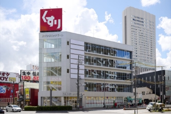名古屋市金山総合駅アスナル東側の旧京楽会館跡地に東海地区最大規模のスギ薬局と病院を併設したスギクリニックモール(5階建鉄骨造)の